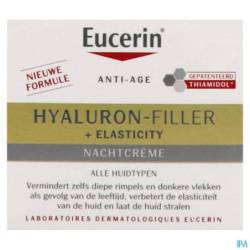 - Il est recommandé d'utiliser la crème de nuit HYALURON-FILLER + ELASTICITY en association avec la crème de jour Eucerin HYALURON-FILLER + ELASTICITY.