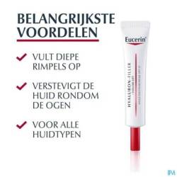 Le Soin Contour des Yeux Eucerin HYALURON-FILLER + VOLUME-LIFT agit sur les plis et le relâchement de la peau causés par la perte de volume cutané et exerce une action ciblée sur la zone sensible du contour de l'œil. Avec ses trois ingrédients actifs complémentaires, ce soin cliniquement testé contribue à redéfinir le contour de l'œil. Actif naturel, le