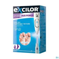 Excilor® Traitement des verrues DUO POWER est indiqué pour le traitement des verrues sur les mains et les pieds chez les adultes et les enfants de plus de 4 ans.