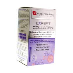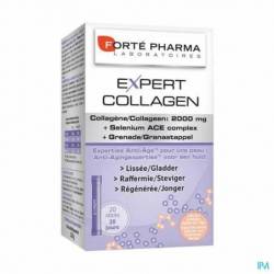 Avec Expert Collagen, les Laboratoires Forté Pharma vous proposent une formule complète dont les actifs vont aider votre peau à garder un aspect lissé et raffermi. Simple à utiliser, un seul stick par jour d'Expert Collagen vous apporte 2000 mg de collagène.De plus, pour une action renforcée, sa formule associe de la grenade, de la vitamine A et un complexe vitamines C, E et sélénium qui contribue à protéger les cellules contre le stress oxydatif.