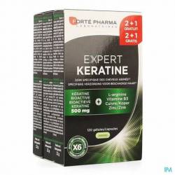 Kératine naturelle hydrosoluble, bioactive et hautement biodisponible + complexe de vitamines et minéraux spécifiques. Expert Kératine redonne force et beauté à vos cheveux. Sa formule exclusive agit en deux temps pour aider à : Redonner de la matière au cheveu grâce à la kératine: Principal constituant du cheveu, la kératine représente 95% de la fibre capillaire. Son action est complétée et optimisée par un apport en arginine et en zinc, autre élément constitutif de la structure interne du cheveu(1).