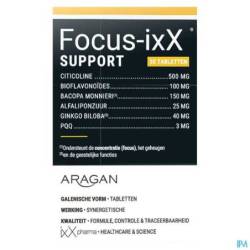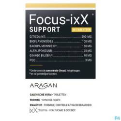 Focus-ixX®SUPPORT est une formule très innovante et efficace pour soutenir la concentration et la vitesse de réaction. Soutien cognitif idéal pour les adultes y compris pendant et après les inconforts hivernaux et aussi pour les personnes âgées. IxX pharma utilise pour la première fois le PQQ ou pyrroloquinoline quinone, une orthoquinone hétérocyclique aromatique.