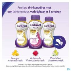 Fortimel Jucy Plus est un complément nutritionnel oral hyperénergétique et sans matières grasses. Sans gluten et pauvre en lactose.
