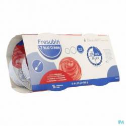 Fresubin 2 kcal Crème est un aliment complet à manger à la cuillère, riche en énergie (2,0 kcal/g) et en protéines de haute qualité, sans fibres. Cet aliment fournit à l'organisme l'énergie indispensable lorsque l'alimentation habituelle ne suffit pas ou qu'un apport de nutriments supplémentaires est nécessaire. La formule riche contient des protéines facilement absorbables et toutes les vitamines et minéraux essentiels. C'est un aliment prêt à l'emploi qui peut être utilisé comme source unique de nutrition.