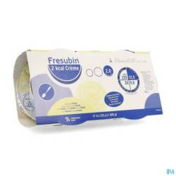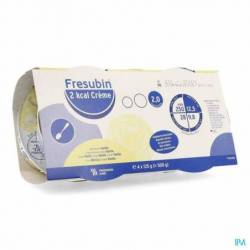 Fresubin 2 kcal Crème est un aliment complet à manger à la cuillère, riche en énergie (2,0 kcal/g) et en protéines de haute qualité, sans fibres. Cet aliment fournit à l'organisme l'énergie indispensable lorsque l'alimentation habituelle ne suffit pas ou qu'un apport de nutriments supplémentaires est nécessaire. La formule riche contient des protéines facilement absorbables et toutes les vitamines et minéraux essentiels. C'est un aliment prêt à l'emploi qui peut être utilisé comme source unique de nutrition.