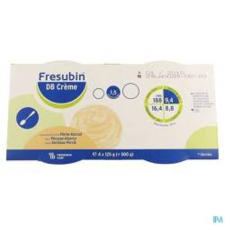 Fresubin DB Crème est une aliment complet, riche en énergie (1,5 kcal/g) et en protéines de haute qualité, avec fibres. Cet aliment fournit à l'organisme l'énergie indispensable lorsque l'alimentation habituelle ne suffit pas ou qu'un apport de nutriments supplémentaires est nécessaire. La formule a été spécialement conçue pour les personnes présentant des troubles du métabolisme glucidique et contient une quantité élevée d'acides gras insaturés. Les fibres et les glucides lents présents dans cette formule contribuent à un index glycémique bas. C'est un aliment prêt à l'emploi qui peut être utilisé comme source unique de nutrition.