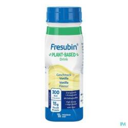 Fresubin PLANT-BASED Drink est une alimentation buvable complète et végétale à usage médical, riche en énergie (300 kcal/bouteille) et en protéines de haute qualité (20 g/bouteille), avec fibres. Riche en vitamine D3 à base de plantes. Cet aliment fournit à l'organisme l'énergie indispensable lorsque l'alimentation habituelle ne suffit pas ou qu'un apport de nutriments supplémentaires est nécessaire. Convient aux végétaliens, végétariens et flexitariens. La formule riche contient des protéines végétales de soja facilement absorbables et toutes les vitamines et minéraux essentiels. C'est un aliment prêt à l'emploi qui peut être utilisé comme source unique de nutrition. Sans protéines de lait, sans lactose et sans gluten.