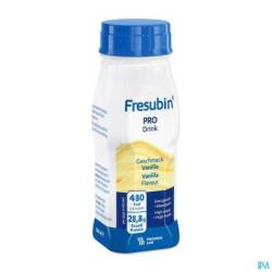 Fresubin PRO Drink est une alimentation buvable complémentaire prête à l'emploi à usage médical, riche en énergie (480 kcal/bouteille) et en protéines de haute qualité (28,8 g/bouteille), sans fibres. Cet aliment fournit à l'organisme l'énergie indispensable lorsque l'alimentation habituelle ne suffit pas ou qu'un apport de nutriments supplémentaires est nécessaire. Riche en vitamine D et en calcium. Cliniquement sans lactose et sans gluten. Spécifiquement pour le support nutritionnel de patients dénutris ou à risque de dénutrition, en particulier avec des besoins accrus en énergie, protéines, calcium et vitamine D : par ex. en cas de sarcopénie, de cancer, de fragilité ou de troubles musculo-squelettiques liés à l'âge.
