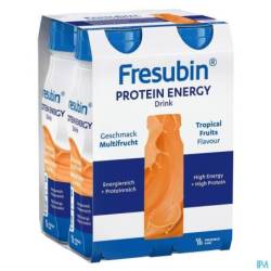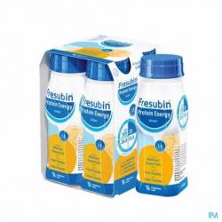 Fresubin PROTEIN ENERGY Drink est une alimentation buvable complète à usage médical, riche en énergie (300 kcal/bouteille) et en protéines de haute qualité (20 g/bouteille), sans fibres. Cet aliment fournit à l'organisme l'énergie indispensable lorsque l'alimentation habituelle ne suffit pas ou qu'un apport de nutriments supplémentaires est nécessaire. La formule riche contient des protéines facilement absorbables et toutes les vitamines et minéraux essentiels. C'est un aliment prêt à l'emploi qui peut être utilisé comme source unique de nutrition.