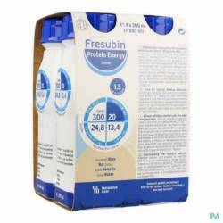 Fresubin PROTEIN ENERGY Drink est une alimentation buvable complète à usage médical, riche en énergie (300 kcal/bouteille) et en protéines de haute qualité (20 g/bouteille), sans fibres. Cet aliment fournit à l'organisme l'énergie indispensable lorsque l'alimentation habituelle ne suffit pas ou qu'un apport de nutriments supplémentaires est nécessaire. La formule riche contient des protéines facilement absorbables et toutes les vitamines et minéraux essentiels. C'est un aliment prêt à l'emploi qui peut être utilisé comme source unique de nutrition.