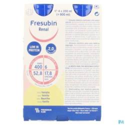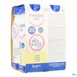 Nutrition à usage médical. Aliment complet à haute teneur énergétique (2 kcal/ml) pour boisson et sonde, avec fibres. A prendre en cas d'insuffisance rénale et a une teneur réduite en protéines (6 ET %) et en électrolytes et contient de l'huile de poisson (EPA et DHA).
