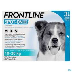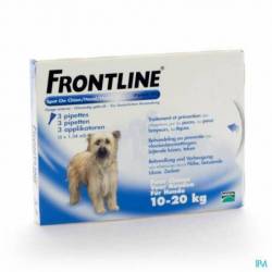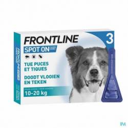 Frontline® Spot-On est un produit facile à appliquer qui procure à votre chien une bonne protection contre les puces et les tiques. Frontline® Spot-On tue les puces en 24h et les tiques en 48h. Frontline® Spot-On protège votre chien pendant 4 semaines contre les puces et 4 semaines contre les tiques. Pour les chiens de 10kg à 20kg.