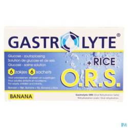 Verser le contenu du sachet dans un grand verre d'eau (250 ml). Bien mélanger et boire le contenu du verre. Ne pas gardez la solution, couverte dans le réfrégirateur, pendant plus que 24 heures. - Chez le nourrisson de 3 mois à 1 an : Perte évaluée à moins de 10% l'on donnera 150 à 250 ml/kg/24 h de cette préparation. La moitié du volume est à administrer pendant les 8 premières heures , l'autre moitié pendant les 16 heures qui suivent. On peut fractionner la quantité administée (5 à 10 ml toutes les 5 minutes), celle-ci sera graduellement augmentée jusqu'à ce que l'enfant puisse boire normalement. Si l'état du nourrisson est satisfait endéans les 24 premières heures, il faut ajouter progressivement le lait pour le nourrisson. Par exemple : * 1er jour : 100% Gastrolyte O.R.S. Banana + rice * 2ième jour : 75% Gastrolyte O.R.S. Banana + rice + 25% alimentation * 3ième jour : 50% Gastrolyte O.R.S.Banana + rice + 50% alimentation * 4ième jour : 25% Gastrolyte O.R.S.Banana + rice + 25% alimentation - Chez l'enfant de plus d'un an : L'on donnera au maximum 4 sachets le premier jour, répartis en 24 heures, laisser dissoudre et laisser boire. Pendant les jours qui suivent l'on doit recommencer un régime à base de légumes cuits, de viande ou de poisson. Gastrolyte O.R.S. Banana + rice sera progressivement diminué. - Chez l'adulte : Maximale : 4 à 5 sachets par jour pendant 3 jours, associés à un régime léger adapté.