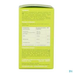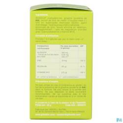 GliSODin® (maltodextrine, gliadine (protéine de blé), extrait de fruit de melon (Cucumis melo L.) titré en superoxyde dismutase (SOD)), agent d'enrobage: hydroxypropylméthylcellulose, gluconate de zinc, levure enrichie en sélénium, antiagglomérant : sels de magnésium d'acides gras, cyanocobalamine (vitamine B12).