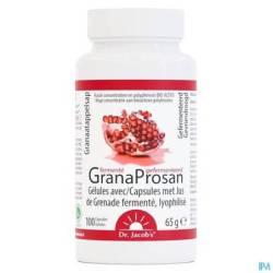 4 capsules contiennent : 2 g d'extrait de jus de grenade fermenté lyophilisé, avec une valeur en polyphénols de 720 mg (équivalent acide gallique).