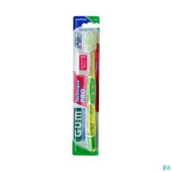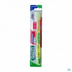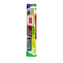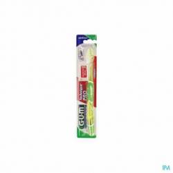 La brosse à dents GUM PRO a été soigneusement conçue pour offrir à vos dents et à vos gencives les soins supérieurs qu'elles méritent. Ses poils spécialement conçus sont doux pour les dents et les gencives et vous aident à nettoyer les zones difficiles d'accès où la plaque dentaire s'accumule, irrite les gencives et tache les dents. Essayez GUM PRO et profitez d'une sensation de fraîcheur et de propreté à chaque brossage. Pour un résultat optimal, nous vous recommandons d'utiliser la brosse à dents en combinaison avec le dentifrice et le bain de bouche GUM ActiVital®.