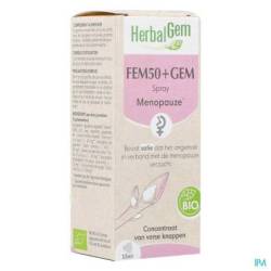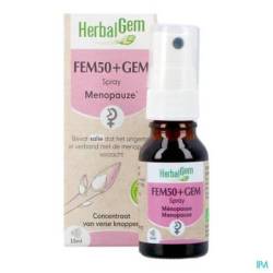 Formulé à base d'extraits de bourgeons et de jeunes pousses, le complexe FEM50+GEM accompagne la femme de plus de 50 ans pendant sa ménopause. Le pommier et L'airelle agissent sur la composante hormonale. L'aubépine apaise en cas de sommeil perturbé. La teinture mère de sauge va jouer un rôle régulateur des sueurs nocturnes et L'huile essentielle de carotte participe à un meilleur équilibre hormonal grâce à son action hépatique.