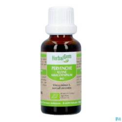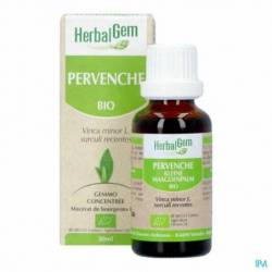 Plante vivace toujours verte, signe d'une grande vitalité, elle remporte la victoire sur l'hiver et la mauvaise saison. Les recherches récentes ont montré que la pervenche agit sur la circulation cérébrale, elle revitalise tout le métabolisme cérébral. Le macérat glycériné de pervenche constitue notamment un soutient à la mémoire et à la concentration.
