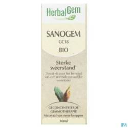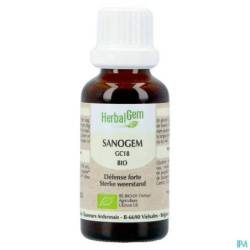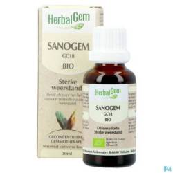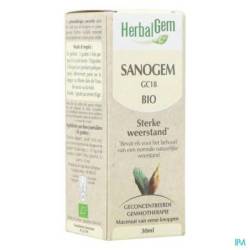 SANOGEM contribue à freiner le développement des germes grâce à l'association des extraits de bourgeons de peuplier et d'aulne, principales sources végétales de la propolis. Les abeilles recueillent pour la production de leur propolis, presque exclusivement les résines de bourgeons de peuplier et d'aulne, riches en flavonoïdes. Cette propolis a entre autre pour les abeilles un rôle hygiénique en créant une couche protectrice contre les invasions microbiennes ou fongiques. Tandis que le peuplier était considéré par les anciens comme un arbre bouclier, l'aulne glutineux est une essence robuste et résistante à la pourriture.