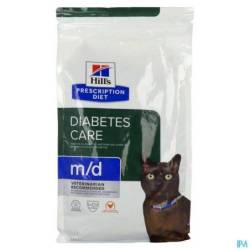 Les croquettes pour chat Hill's Prescription Diet m/d avec poulet sont un aliment diététique complet pour la régulation de l'apport en glucose (diabète sucré) chez le chat adulte. Cet aliment contient de faibles niveaux de mono- et disaccharides.
