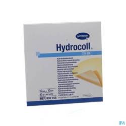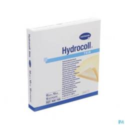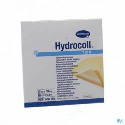 PropriétésHydrocoll® est un pansement hydrocolloïde absorbant adhésif recouvert d'un film polyuréthane semi-perméable empêchant la pénétration des bactéries et de l'humidité. Les particules hydrocolloïdes gonflent en absorbant l'exsudat et se transforment en un gel qui s'étend dans la plaie et maintient l'humidité du milieu. Le gel poursuit l'absorption des exsudats jusqu'à saturation des particules hydrocolloïdes. La partie supérieure gonfle et le pansement est saturé lorsque ce gonflement atteint environ 1 cm au-dessus du bord. La couche de type gel de la face interne du pansement Hydrocoll® prévient l'adhérence à la plaie. Le pansement peut être retiré de manière indolore et sans porter atteinte à la granulation et au tissu néoformé. La couche supérieure fait fonction de barrière fiable contre les bactéries et protège la plaie des infections et de l'humidité. Le patient peut prendre une douche ou un bain avec le pansement. Hydrocoll® ne laisse pas pénétrer les rayons UV A ou B. La capacité d'absorption d'Hydrocoll® thin est légèrement inférieure (env. 50%) et le pansement convient particulièrement pendant la phase d'épithélialisation. Au cours de cette phase, le milieu humide créé par Hydrocoll® thin favorise la division et la migration cellulaire dans l'épithélium. Pendant cette phase, les intervalles de renouvellement du pansement peuvent être prolongés jusqu'à sept jours maximum. La couverture transparente de la plaie facilite le contrôle de son état. Les deux pansements, plus particulièrement Hydrocoll® thin, peuvent aussi être appliqués dans le cadre d'un traitement occlusif dans différentes maladies de la peau, mais uniquement sous contrôle médical.