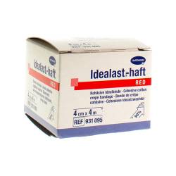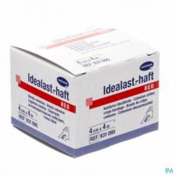 Bandage élastique de couleur rouge.Idealast®-haft est un bandage cohésif durablement élastique, à allongementcourt, d'une extensibilité de 90 % environ, l'effet cohésif des deux faces assure l'ajustement parfait du bandage, une bonne pression de travail et une faible pression au repos ; le bandage blanc radiotransparent est perméable l'air et stérilisable (vapeur à 134°C).
