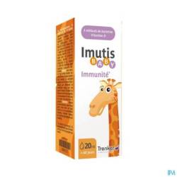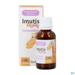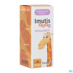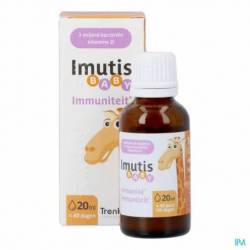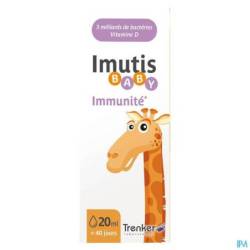 Formulation unique qui permet à Imutis Baby d'être conservé à température ambiante. Imutis Baby est équipé d'un comptegouttes pour en faciliter l'emploi.1Gérard, P. & Benalier-Donadille, A. et al., 2009 • 2Cruchet et al., 2015 • 3Foster et al., 2011 • 4Tlaskal et al., 2005 • 5Ahmadi et al., 2015 • 6La vitamine D contribue au fonctionnement normal du système immunitaire des enfants