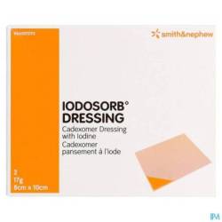 IODOSORB se présente sous forme d'une pommade / de pâte stérile brun foncé avec un supportde gaze des deux côtés. Il contient du cadexomère (microsphères d'amidon modifié), dupolyéthylène glycol, du poloxamère et de l'iode. Les sphères de cadexomère sontbiodégradables. IODOSORB absorbe l'excès d'exsudat et de fibrine du lit de la plaie et réduit lacharge bactérienne à la surface de la plaie. Ce faisant, il se transforme en gel mou et humide.IODOSORB supprime les obstacles à la cicatrisation grâce à sa double action antimicrobienne età ses propriétés de débridement. L'action antimicrobienne à large spectre est assurée par lalibération soutenue d'iode et le débridement de la fibrine est assuré par la matrice decadexomère.