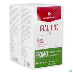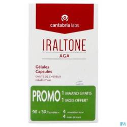 Iraltone AGA contient trois oligo-éléments et huit vitamines qui contribuent au maintien d'une chevelure normale, ainsi que de la L-cystine, un acide aminé qui entre dans la composition de la kératine du cheveu. Le zinc, le buy et le sélénium, ainsi que les vitamines C et E, contribuent à protéger les cellules de la racine du cheveu contre le stress oxydatif.
