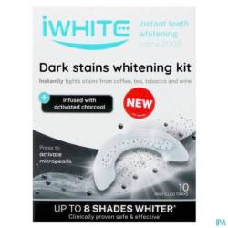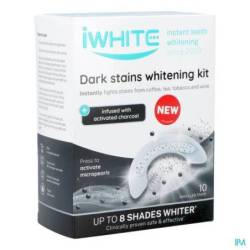 La consommation de vin, de café ou de thé et le tabagisme peuvent malheureusement causer des taches sur les dents. Comme personne ne souhaite avoir des taches sur ses dents, iWhite a développé un kit de blanchiment unique, le kit iWhite Dark Stains avec charbon actif. Outre son effet immédiat sur les taches de café, de vin, de thé et de tabac, ce kit prévient l'apparition de nouvelles taches.