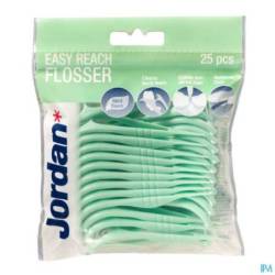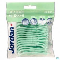 Le Jordan Easy Reach Flosser est un fil dentaire et un cure-dents en un au goût de menthe frais qui permet de nettoyer les espaces entre toutes vos dents, même entre les dents postérieures.