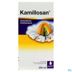* comme thé pour le traitement de problèmes à l'estomac ou aux intestins: solution diluée de Kamillosan Solution: 2 à 3 ml dans une tasse d'eau tiède 3 ou 4 fois par jour. Ne pas utiliser en usage interne en dessous de l'âge de 12
