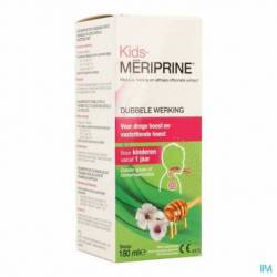 Kids-MÉRIPRINE®, grâce à sa composition spécifique, produit un effet hydratant, lubrifiant et protecteur sur les muqueuses des voies respiratoires supérieures, en apaisant ainsi l'irritation. Son effet émollient calme n'importe quel type de toux, en liquéfiant le mucus qui peut être présent, ce qui en facilite l'expulsion. Cette action favorise la restauration du bien-être physiologique. Le miel et le fructose qui entrent dans la composition, en plus du goût agréable qu'ils donnent à la préparation, produisent un effet hydratant et émollient. Les extraits de plantes - plantain, mauve, althaea officinalis et grindélia - contiennent naturellement un mucilage et des résines qui protègent le tissu superficiel (épithélium) ; ceux-ci aident à protéger les muqueuses et favorisent un bon fonctionnement des voies respiratoires supérieures.
