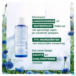 Le Démaquillant waterproof au Bleuet issu de culture BIO de Klorane offre une double action efficace : il élimine instantanément et sans effort le maquillage longue tenue, même waterproof, tout en renforçant les cils. Sa formule, spécialement conçue pour tous les types de peaux et les yeux sensibles y compris ceux des porteurs de lentilles, ne laisse aucun film gras. Enrichi en eau de Bleuet issu de culture BIO connu pour ses propriétés apaisantes et décongestionnantes, il prend soin de vos yeux tout en offrant un démaquillage parfait.