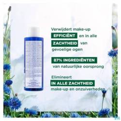 Le Démaquillant au Bleuet issu de culture BIO de Klorane démaquille efficacement* et en douceur les yeux sensibles et est idéal pour les porteurs de lentilles. Formulé avec 87 % d'ingrédients d'origine naturelle, dont le Bleuet issu de culture biologique, il respecte la fragilité des yeux et des paupières délicates. Grâce à son pH identique à celui des larmes, il ne pique pas les yeux.