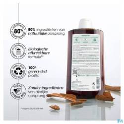 Le shampoing antichute fortifiant et stimulant à la Quinine issue du Quinquina médicinal de Klorane offre une véritable solution pour freiner la chute et revigorer les cheveux fatigués. La synergie de la Quinine et de la Caféine diminue la chute et fortifie l'ancrage des cheveux, tandis que l'Edelweiss Bio, le Manganèse et la Quinine stimulent leur croissance. Grâce à sa formule sans sulfates, qui lave en douceur et préserve la chevelure de toute agression et fragilité, la chute est ralentie de 60%*, les cheveux sont moins cassants et plus forts.