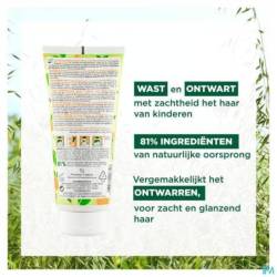 • Lavant : sa formule biodégradable et délicate forme une mousse légère qui nettoie en douceur cheveux et cuir chevelu. • Démêlant : Enrichi en Avoine apaisante issue de culture BIO et agents démêlants, il facilite le démêlage, pour des cheveux doux et brillants, sans nœuds.• Tolérant : élaboré selon les standards de haute tolérance pédiatrique et testé sous contrôle dermatologique, s'utilise en toute sécurité dès 3 ans et ne pique pas les yeux.