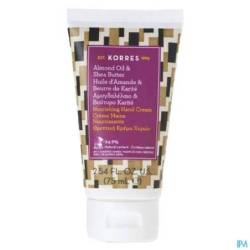 La Crème Mains Amande & Beurre De Karité Korres est une crème très nourrissante et régénérante pour les les mains sèches et et douloureuses. Enrichi en beurre de karité qui pénètre immédiatement dans la peau et offre une couche nourrissante à la peau qui prévient le dessèchement. L'huile douce d'amande maintient la souplesse de la peau tandis que la provitamine B5 restaure la peau.
