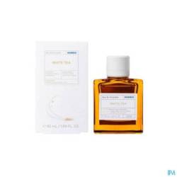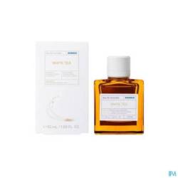 Puis, vient l'arôme sophistiqué et délicat du Thé Blanc dont l'élégance s'entrelace à un bouquet de Pivoine fraîche, de Freesias et de Jasmin enveloppant. Enfin viennent les accords boisés, subtilement terreux du Cèdre et de la Mousse de Chêne.