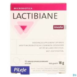 Lactibiane Imedia est composé de 4 souches microbiotiques dosées à 30 milliards par stick orodispersible :