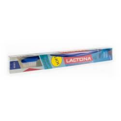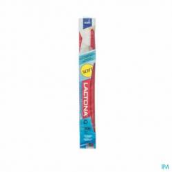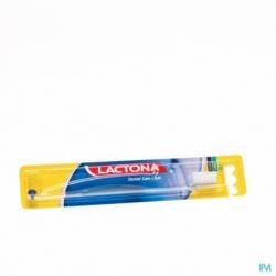 La brosse à dents Lactona iQ possède une petite tête de brosse compacte et ergonomique. Cela garantit une élimination optimale de la plaque dentaire et une bonne accessibilité, même au fond de la bouche. Le pinceau a un long manche avec un col étroit et un capuchon en caoutchouc à l'extrémité. Ce capuchon donne plus de stabilité lors du brossage mais aussi une identification personnelle de la couleur du pinceau.