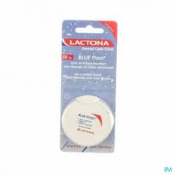 Le fil dentaire Lactona est adapté à l'élimination de la plaque dentaire dans les petits espaces étroits. Le fil dentaire est légèrement ciré et glisse donc plus facilement entre les dents. La couleur bleue vous permet de voir clairement la plaque sur le fil dentaire. Le fil dentaire est imprégné de fluorure et a un goût de menthe fraîche.