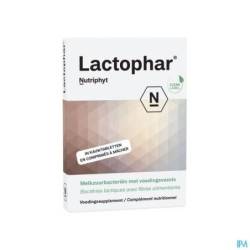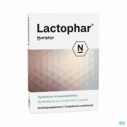 Synbiotiques : Bactéries lactiques avec fibres alimentaires en comprimé à mâcher. Lactophar est une combinaison équilibrée de bactéries humaines bénignes avec les fibres alimentaires nécessaires sous la forme d'un comprimé pratique à mâcher.