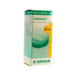 b) Traitement des escarres de stade 1 : Nettoyez la plaie avec une solution stérile. Il est recommandé d'utiliser une solution saline (0,9 %) ou une solution pour le nettoyage des plaies, telle que Prontosan®. Séchez soigneusement la peau autour de la plaie cutanée. Vaporisez Linovera® directement sur la peau. Couvrez la zone avec un pansement approprié, tel que Askina® et/ou des bandages, afin de permettre à la plaie de cicatriser. Appliquez le produit 2 à 3 fois par jour, conformément au protocole de traitement du personnel soignant.