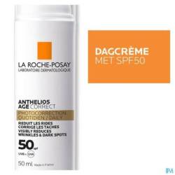 Anthelios Age Correct SPF50 est une crème solaire anti-rides et anti-taches pour le visage offrant une très haute protection SPF 50 UVA/UVB. Elle aide à prévenir et à réduire les signes du vieillissement cutané en 4 semaines en comblant les rides et ridules et en stimulant les mécanismes physiologiques du renouvellement cutané. La crème solaire offre également une protection contre la pollution (en limitant l'adhérence des particules polluantes sur la peau) et une protection contre l'oxydation (en prévenant le stress oxydatif causé par la pollution et les rayons infrarouges).