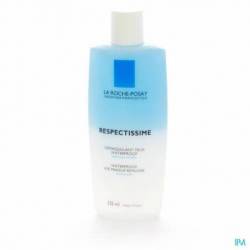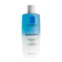 La Roche-Posay Respectissime Waterproof Démaquillant Yeux 125 ml a été spécialement conçu pour les personnes ayant les yeux sensibles et les porteurs de lentilles de contact. Il combine la puissance des phases huileuses pour éliminer efficacement le maquillage waterproof avec la douceur d'une phase aqueuse qui prend soin de la peau sensible du contour des yeux. Le produit ne contient ni parabènes ni parfum et a été testé dermatologiquement et ophtalmologiquement pour garantir sa sécurité et son efficacité. Ce démaquillant ne laisse pas de film gras sur la peau et respecte la peau autour des yeux, la laissant fraîche et confortable.