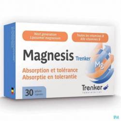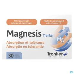 Magnesis Trenker contient 150 mg de magnésium liposomal et toutes les vitamines B. Le complexe de vitamines B est associé au magnésium pour un effet plus complet, contribuant à une réduction de la fatigue1 et à des performances intellectuelles normales.