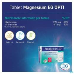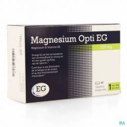Magnesium EG OPTI est un comprimé pelliculé qui contient 225mg de magnésium, ainsi que de la vitamine B6.