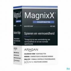 Ce complément de magnésium, qui se présente désormais sous la forme d'un comprimé à mâcher avec une ligne de rupture, contient 450 mg de magnésium élémentaire sous forme d'oxyde de magnésium.