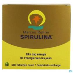 Comme la spiruline est un produit entièrement naturel, les valeurs mesurées sont sujettes aux fl uctuations naturelles, comme celles causées par les variations climatiques saisonnières. Les analyses ci-dessous présentent les valeurs moyennes obtenues sur une période de 10 ans. L'effi cacité de la spiruline dépend non seulement des quantités de substances individuelles, mais également de l'eff et synergique combiné de toutes ces substances. Indépendamment des substances pouvant être pesées et dénombrées, la valeur bioénergétique joue également un rôle important. **Valeur moyenne d'analyse pour 1,8 gramme Marcus Rohrer Spirulina® (6 comprimés):** 1 gramme = 1000 mg (milligramme) 1 mg (milligramme) = 1000 mcg (microgramme) Calories (6 tabs/1,8 g) 6,4 cal Protein 1,06 g Carbohydrates 0,32g - Sugars <0,0018 g - Fibers 0,1 g Fat 0,09 mg - Saturated fat 0,045 mg VITAMINES - Vitamin A (from carotene) 1350 mcg - Vitamin B1 (Thiamine) 2,3 mcg - Vitamin B2 (Riboflavin) 82 mcg - Vitamin B3 (Niacin) 263 mcg - Vitamin B5 (Pantothenic Acid) 2,7 mcg - Vitamin B6 (Pyridoxin) 13 mcg - Active vitamin B12 (Cyanocobalamin) 5,5 mcg - Vitamin H/B8 (Biotin) <0,6 mcg - Vitamin B9/B11 (Folic Acid) 3,2 mcg - Vitamin K 34,7 mcg MINERALS - Calcium 6,5 mg - Iron 4 mg - Phosphorous 18,6 mg - Magnesium 17,2 mg - Zinc 16,2 mcg - Manganese 0,25 mg - Sodium 19,1 mg - Potassium 31 mg - Chromium 28 mcg - Selenium 1,4 mcg - Iodine 9 mcg - Molybdeen <7,2 mcg AMINO ACIDS ESSENTIALS - Isoleucine 55,4 mg - Leucine 89.1 mg - Lysine 50 mg - Methionine 24,2 mg - Phenylalanine 47,6 mg - Threonine 47,4 mg - Tryptophan 17,1 mg - Valine 59,2 mg AMINO ACIDS NON ESSENTIALS - Alanine 75,4 mg - Arginine 67,1 mg - Aspartic Acid 100,3 mg - Cystine 9,3 mg - Glutamic Acid 142,7 mg - Glycine 52,9 mg - Histidine 17,2 mg - Proline 39,9 mg - Serine 52 mg - Tyrosine 42,3 mg FATTY ACIDS - Total Fatty Acids 95 mg - Gamma Linolenic Acid (GLA) 17,6 mg - Linolenic Acid 20,4 mg - Oleic Acid 3,7 mg - Palmitic Acid 42,8 mg - Palmitoleic Acid 4,5 mg - Stearic Acid 1,4 mg CARTENOIDS & PHYTONUTRIENTS - Chlorophyll 14,6 mg - Total carotenoids 8,3 mg - Beta-carotene 2,7 mg - C-Phycocyanin 142 mg - Zeaxanthin 4 mg - Superoxide Dismutase (S.O.D.) 1048 units MICROBIOLOGY - Preservatives none - Artificial colouring none - Artificial flavouring none - Pesticides, Herbicides none - Salmonella,Staphylococcus none - E.Colli none